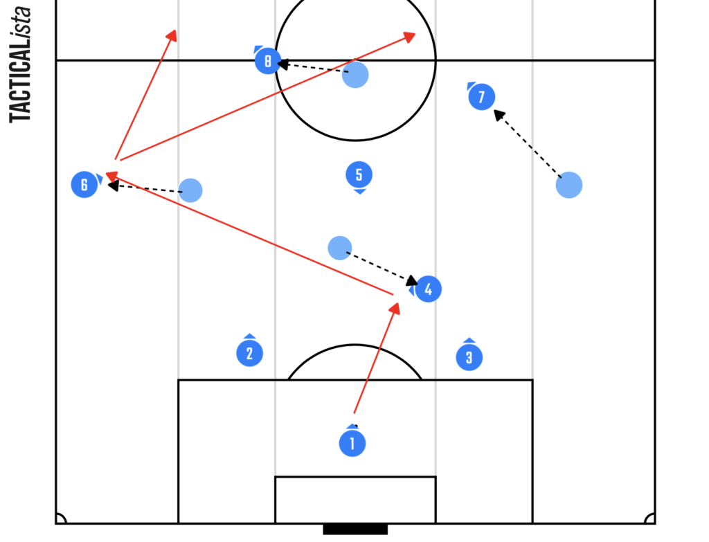 ボランチ(アンカー)は中央に立ち、相手の縦パスを消しながら味方のカバー役を担います。