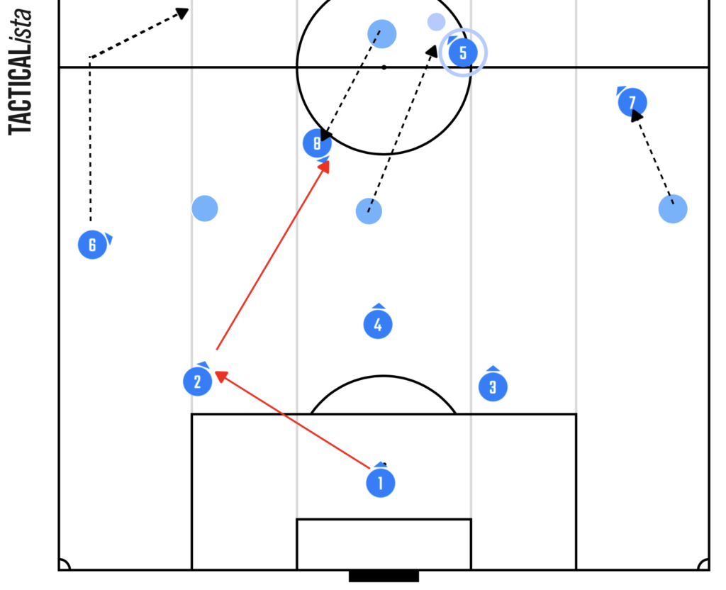 2バックはチーム全体の距離をコンパクトにするこを意識してポジショニングすることが重要です。