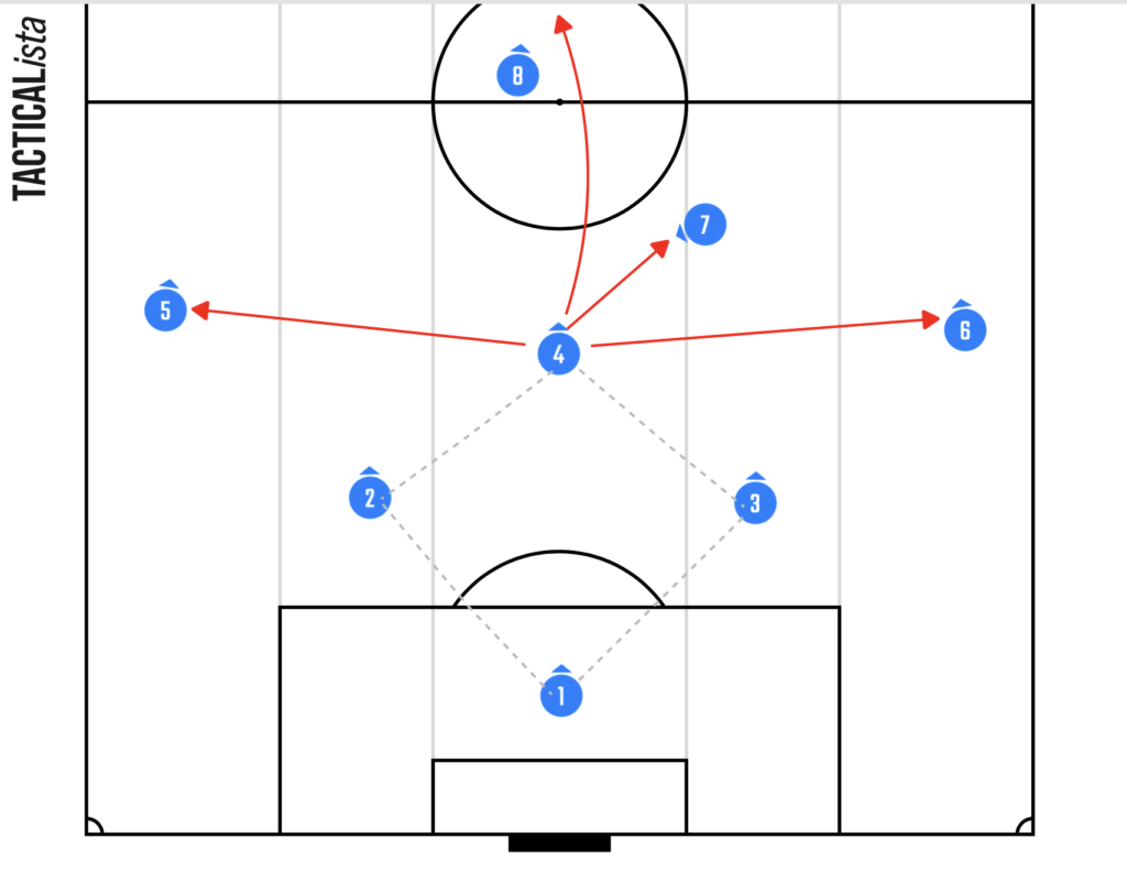 パターン①:中盤起点でのビルドアップ型